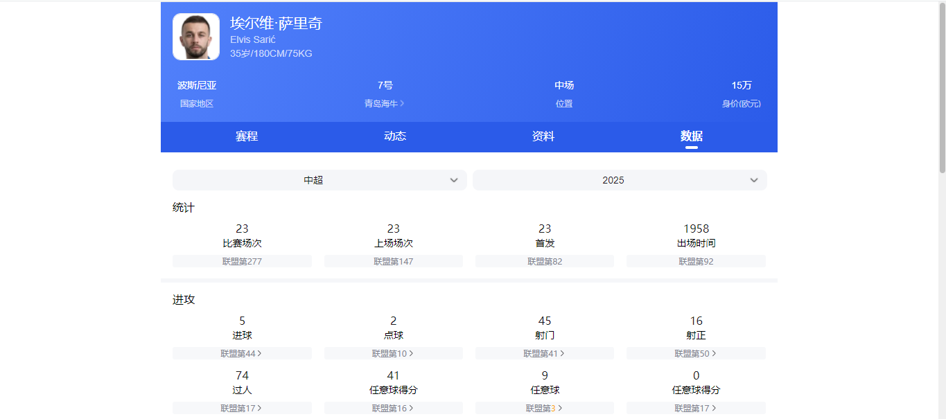 数据不算亮眼,但他独造22球的表现,也是球队自2012年以来队内最多的,称得上是海牛队的保级功臣之一。至于萨里奇的离队原因,显然是年龄较大,竞技状态很难保证。